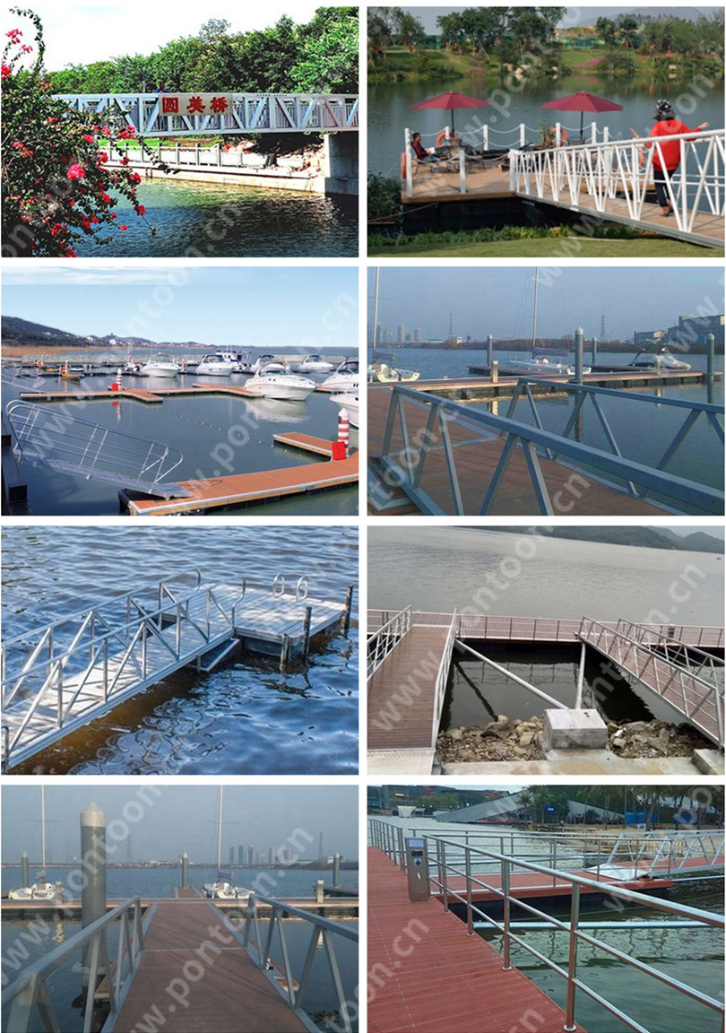 供休閑船舶系靠泊、人員上下船使用的一種浮體結構。浮橋由浮箱、浮橋框架、