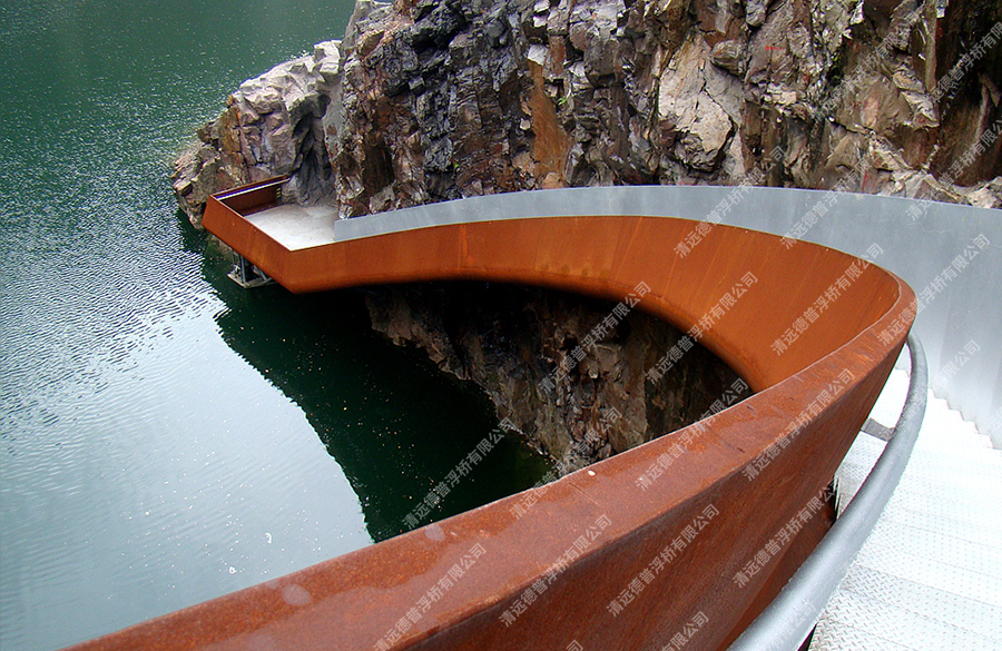 設計者選擇了同時用"加減法"應對采石礦坑特殊形態的生態修復設計原則:采取"加法"策略通過地形重塑和增加植被來構建新的生物群落。針對裸露的山體崖壁,設計者沒有采取常規的包裹方法,而是尊重崖壁景觀的真實性。在出于安全考慮的有效避讓前提下,設計者采取了不加干預的"減法"策略,使崖壁在雨水、陽光等自然條件下進行自我修復。對于存留的臺地邊緣擋土墻,設計者用銹鋼板這種帶有工業印記的材料,對其進行包裹,形成有節奏變化和光影韻律的景觀界面。