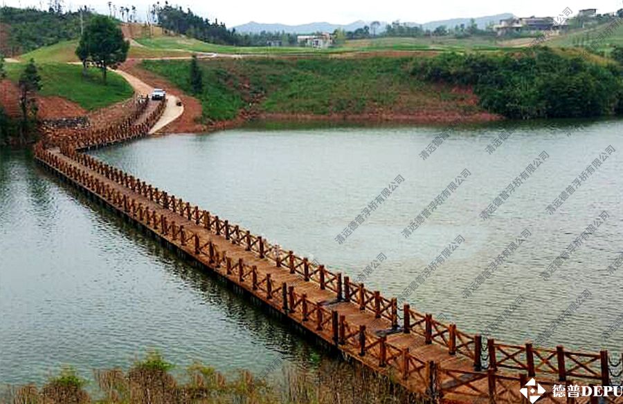 江西廬山西海中信集團(tuán)高爾夫浮橋:全長148米,橋?qū)?.1米,浮橋總面積約437㎡。水位落差10米。該浮橋是我公司獨(dú)立設(shè)計(jì)、施工等相關(guān)工作。也是國內(nèi)唯一可以能過高爾夫球車的浮橋。