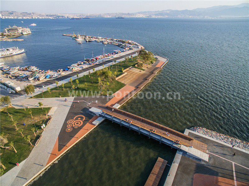 一系列層疊的熱木覆蓋平臺,形成一個誘人的城市表面,在覆蓋著樹木的人工坡道和路堤本身之間伸展。表面幾何形狀的簡單性和通量,鼓勵用戶體驗與夕陽和大海更直接的關系。就像人行天橋一樣,這種由灰木覆蓋的寬闊表面也具有令人愉悅的感覺,這主要是受材料自然紋理的影響。“日落休息室”可幫助用戶重新發現仍然遺忘已久的伊茲密爾儀式,該儀式仍然存在于城市記憶中,并邀請城市居民每天晚上觀看日落并度過美好時光。