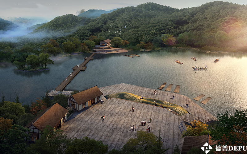 在山巒秀色的定波湖上修建一座浮橋,只為保留最壯闊、最原始的360°無死角湖面景觀