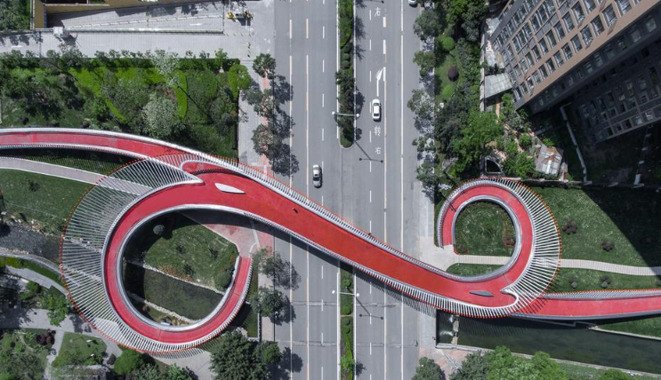 從空中看,這座橋就像一件“如意”鑲嵌于城市之中!